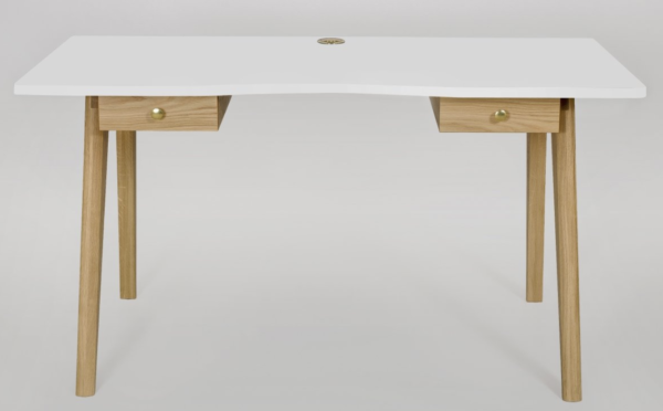 Une ouverture dans le plan de travail est prévue pour faire passer des câbles.