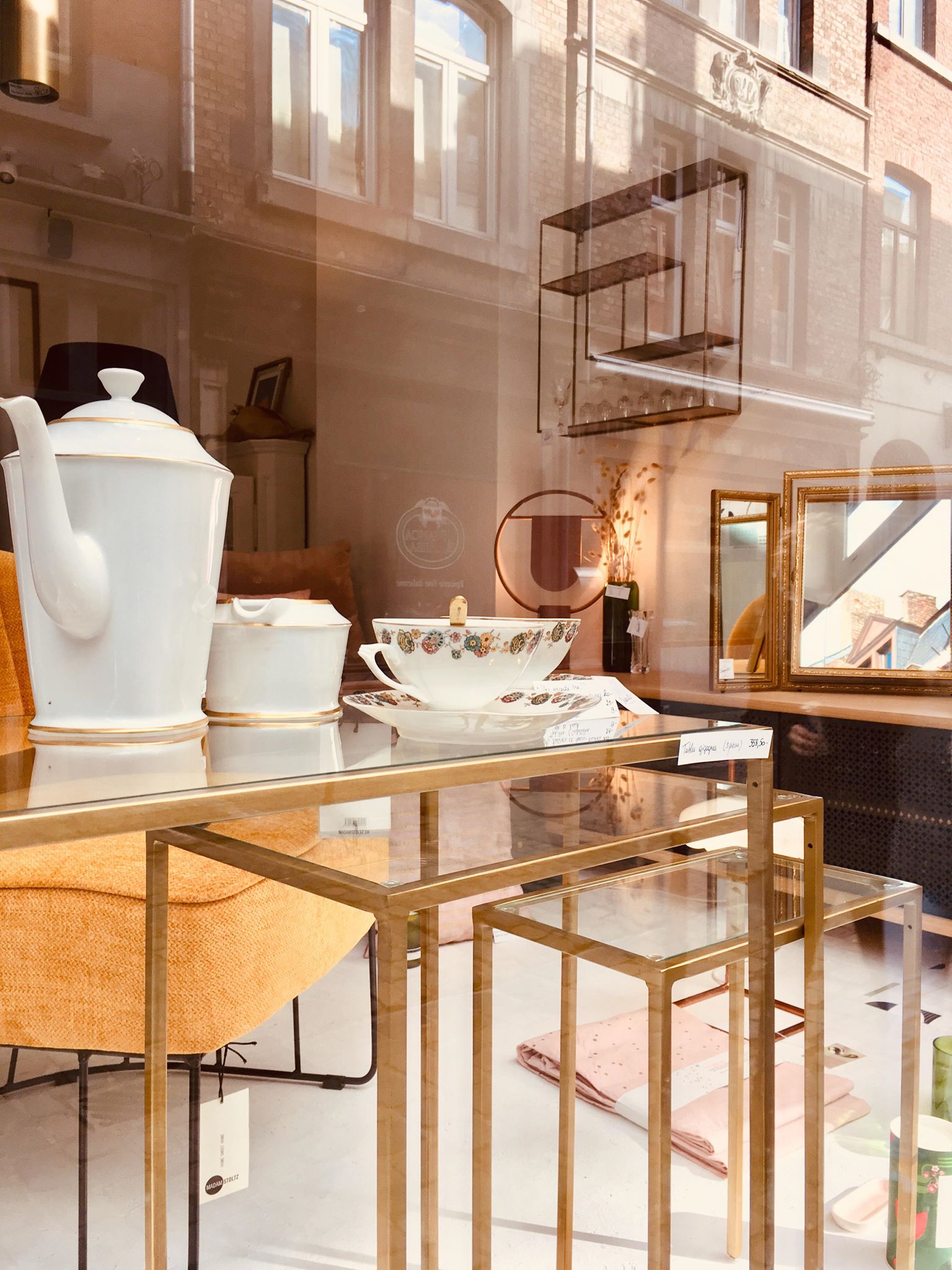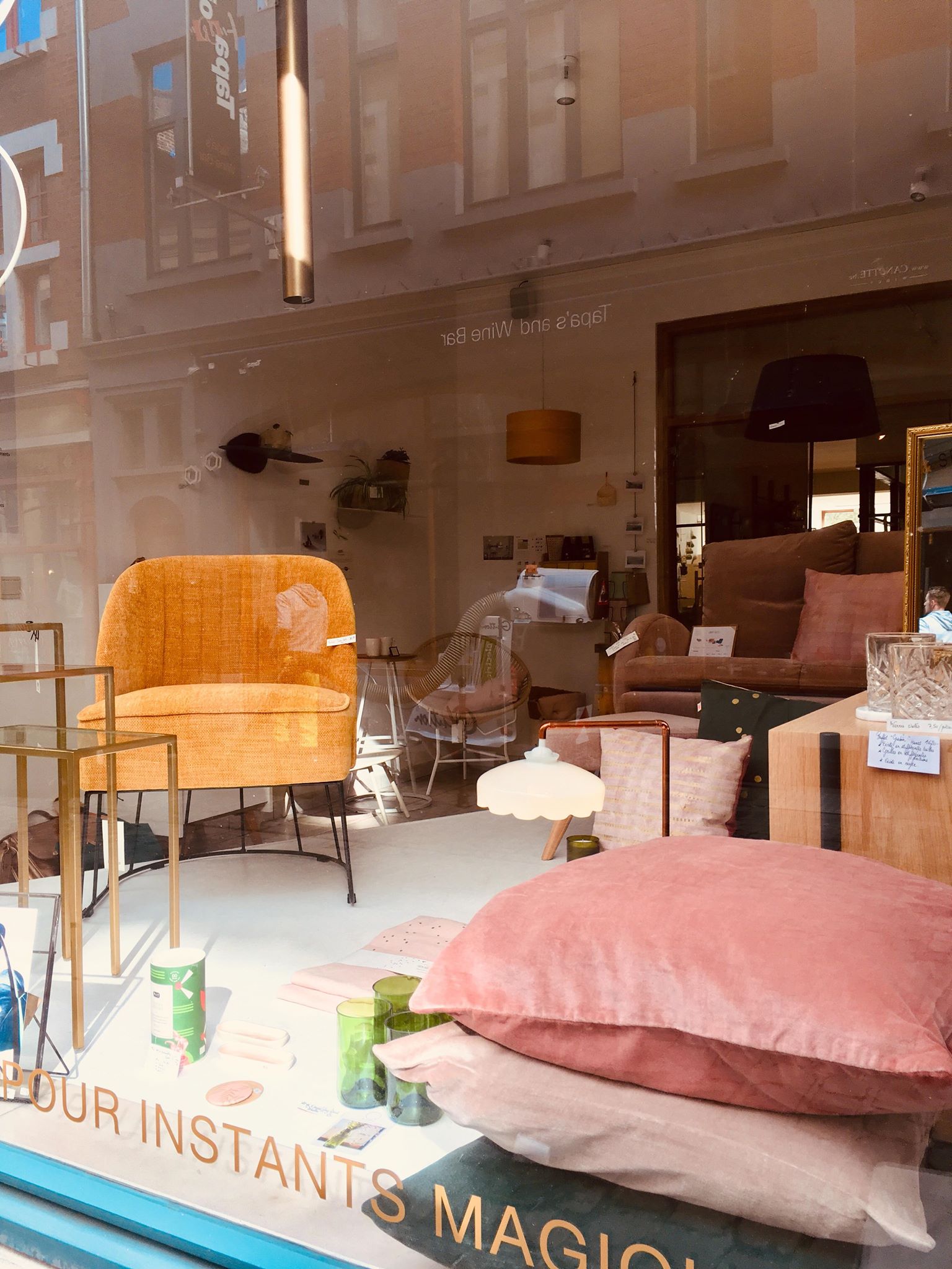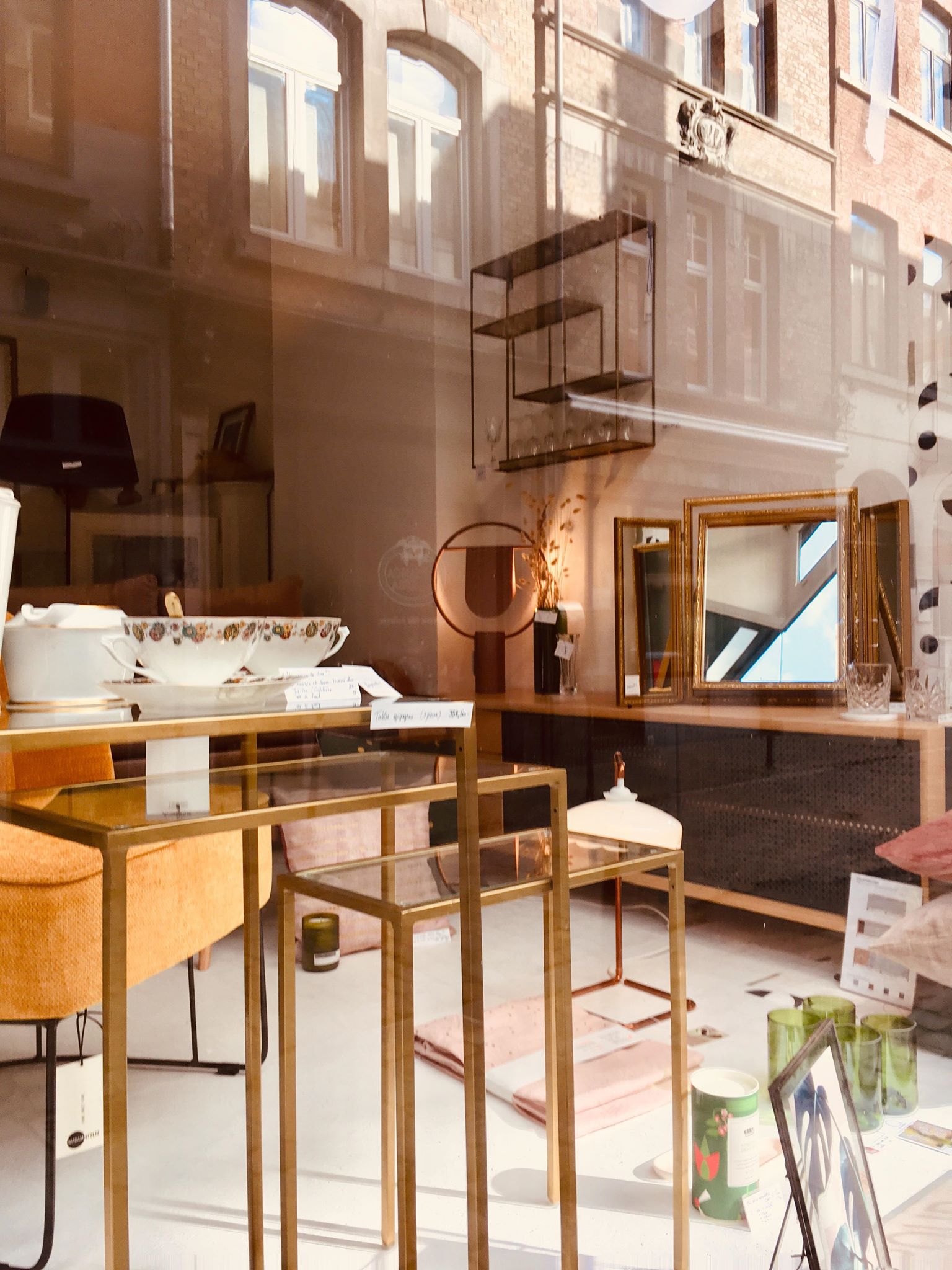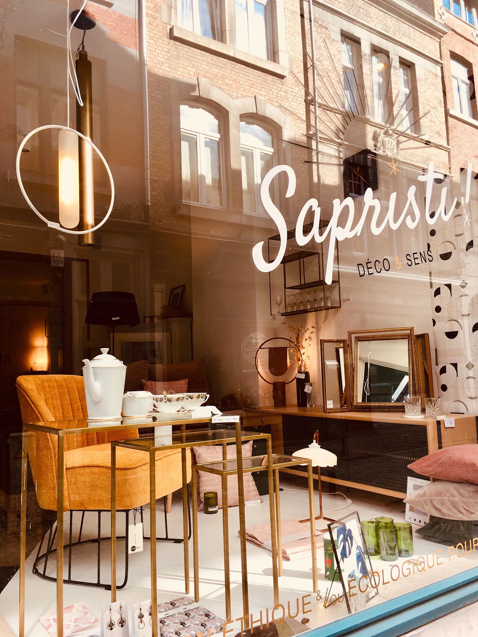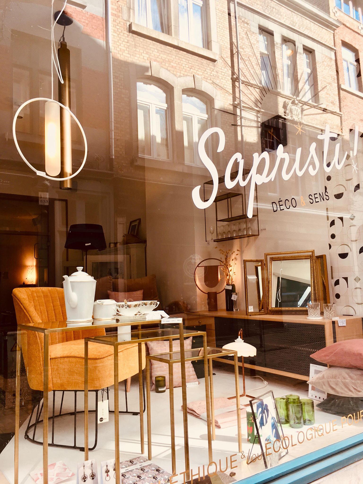 1. Papier peint “Daisy” * Papermint – lé de 3m : 57,90€ | 2. Set de 2x serviettes de table Lina biscuit or * La Cerise sur le Gâteau – 18€ | 3. Horloge murale * Kloq – 179€ | 4. Suspension géométrique en laiton * Madam Stoltz – 115€ | 5. Carreau décoratif en céramique 10x10cm “Go with the flow” * Story Tiles – 25€ | 6. Horloge murale * Sébastien Dehut (Créateur belge!) – 130€ | 7. Verre à whisky * Madam Stoltz – 7,50€ | 8. Fauteuil “Chenille” * Madam Stoltz – 323,95€ | 9. Housse de coussin 50x50cm Lina pluie Or biscuit * La Cerise sur le Gâteau – 38€ | 10. Housses de coussin velours 50×50 cm * Madam Stoltz – 26,25€ | 11. Set de 4 verres “Long drink” * Q de bouteilles – 49€ | 12. Etagère rectangulaire en laiton * Madam Stoltz – 99,95€ | 13. Lampe à poser “Anaë” * Harto Design – 240€