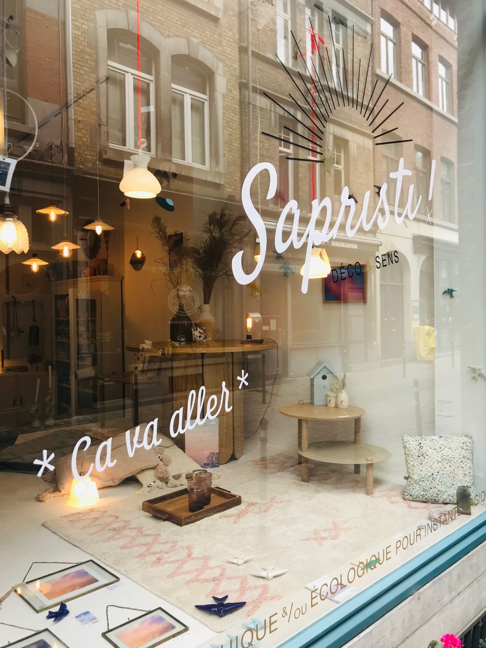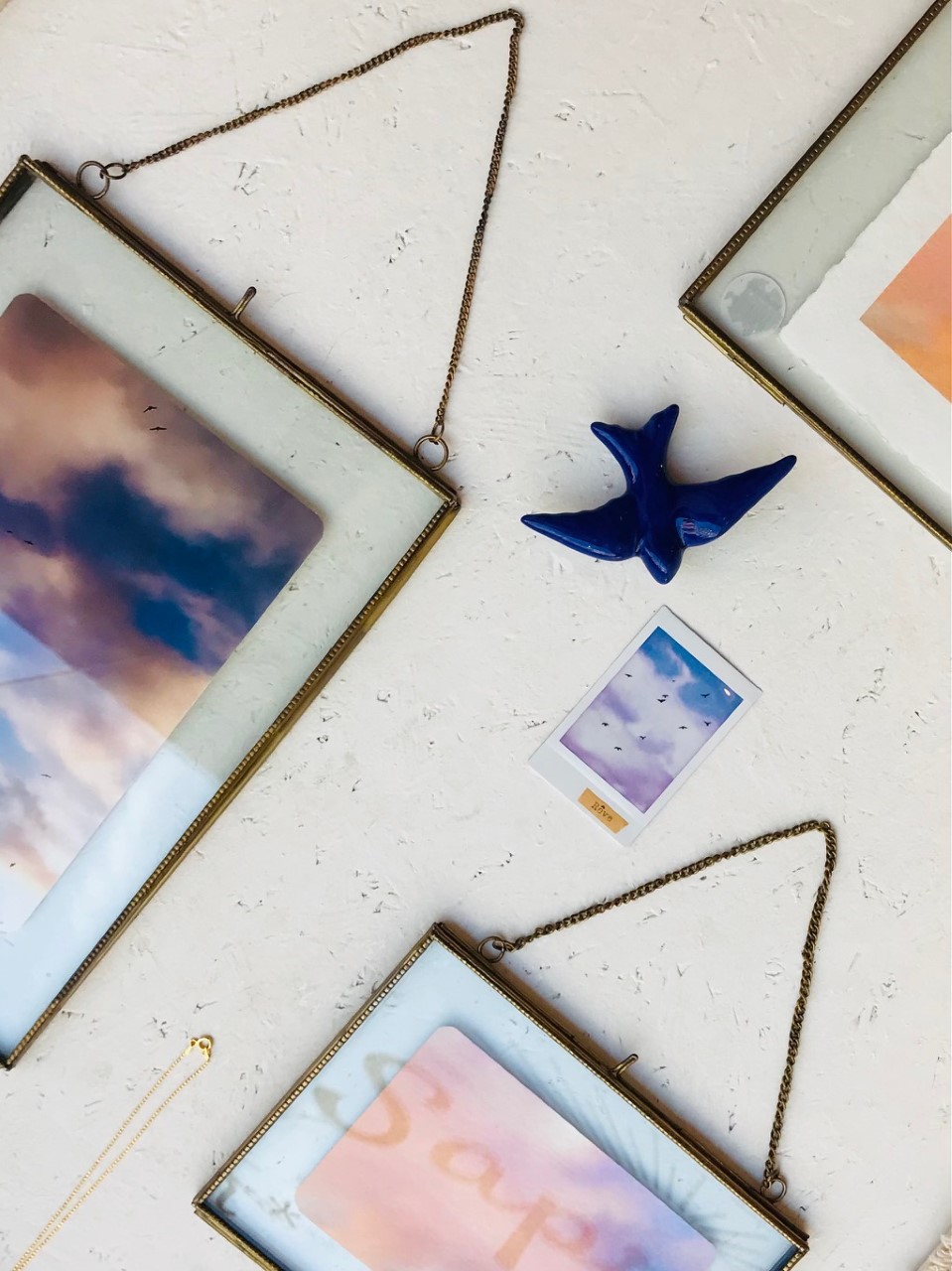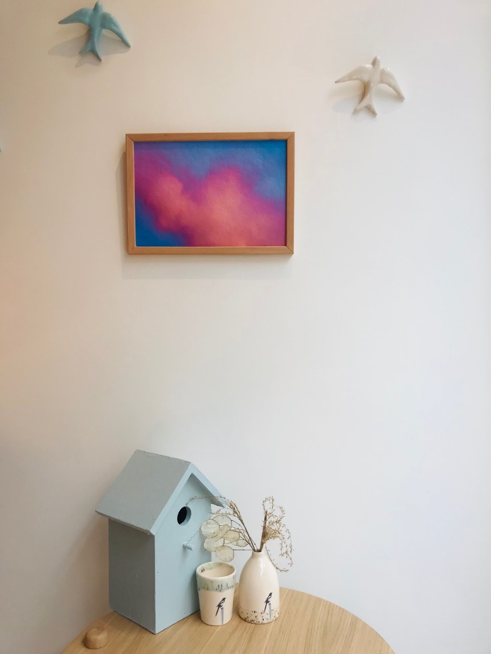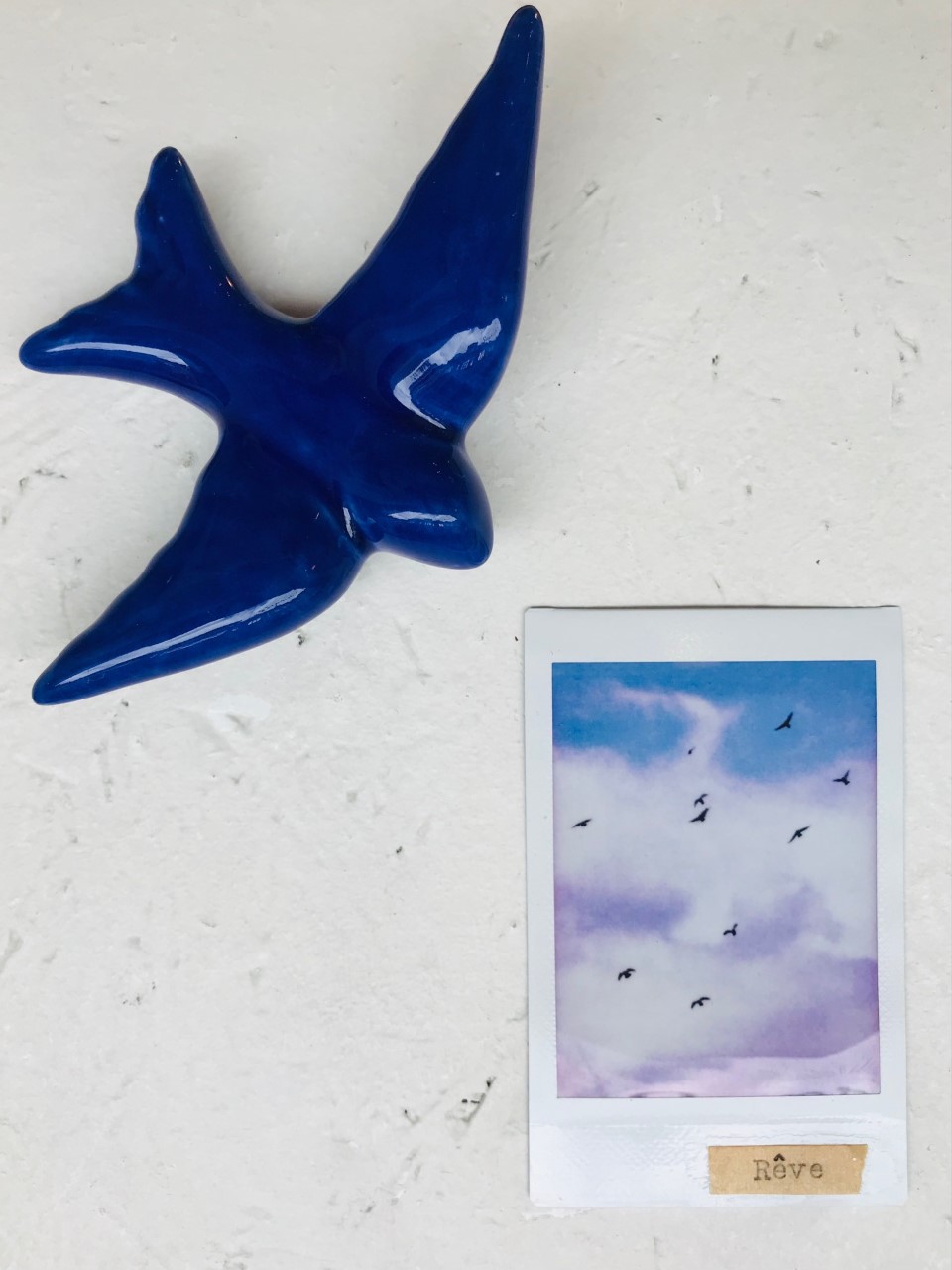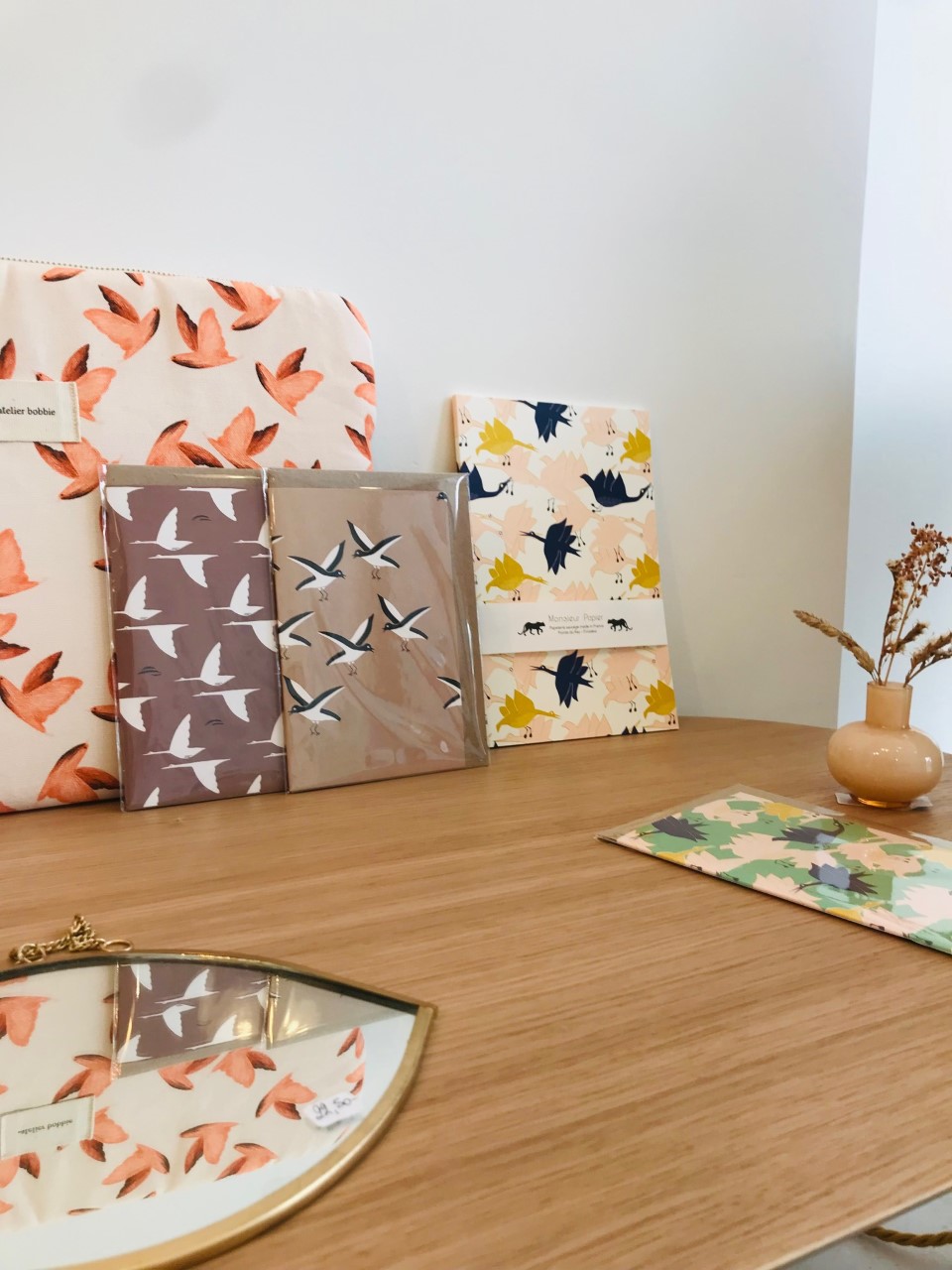 1. Table d’appoint “By Colette” en contreplaqué chêne tablette métal finition dorée * Dizy Design – 199 € | 2. Hirondelles murales, plusieurs tailles et couleurs * Casa Atlantica – à partir de 9 € | 3. Tapis Arc-en-ciel 60x90cm * Madam Stoltz – 35,50 € | 4. Verres en verre recyclé pourpre * Madam Stoltz – 8,50 € | 5. Set de 2 sets de table + serviette en lin belge sérigraphié * Tamara Louis – 30 € | 6. Carte A6 et enveloppe “Ciel 90’s” et “Ciel Barbapapa” * h.O.&M.e. édition – 5 € | 7. Vase oiseau * Kesemy design – 19,50 €