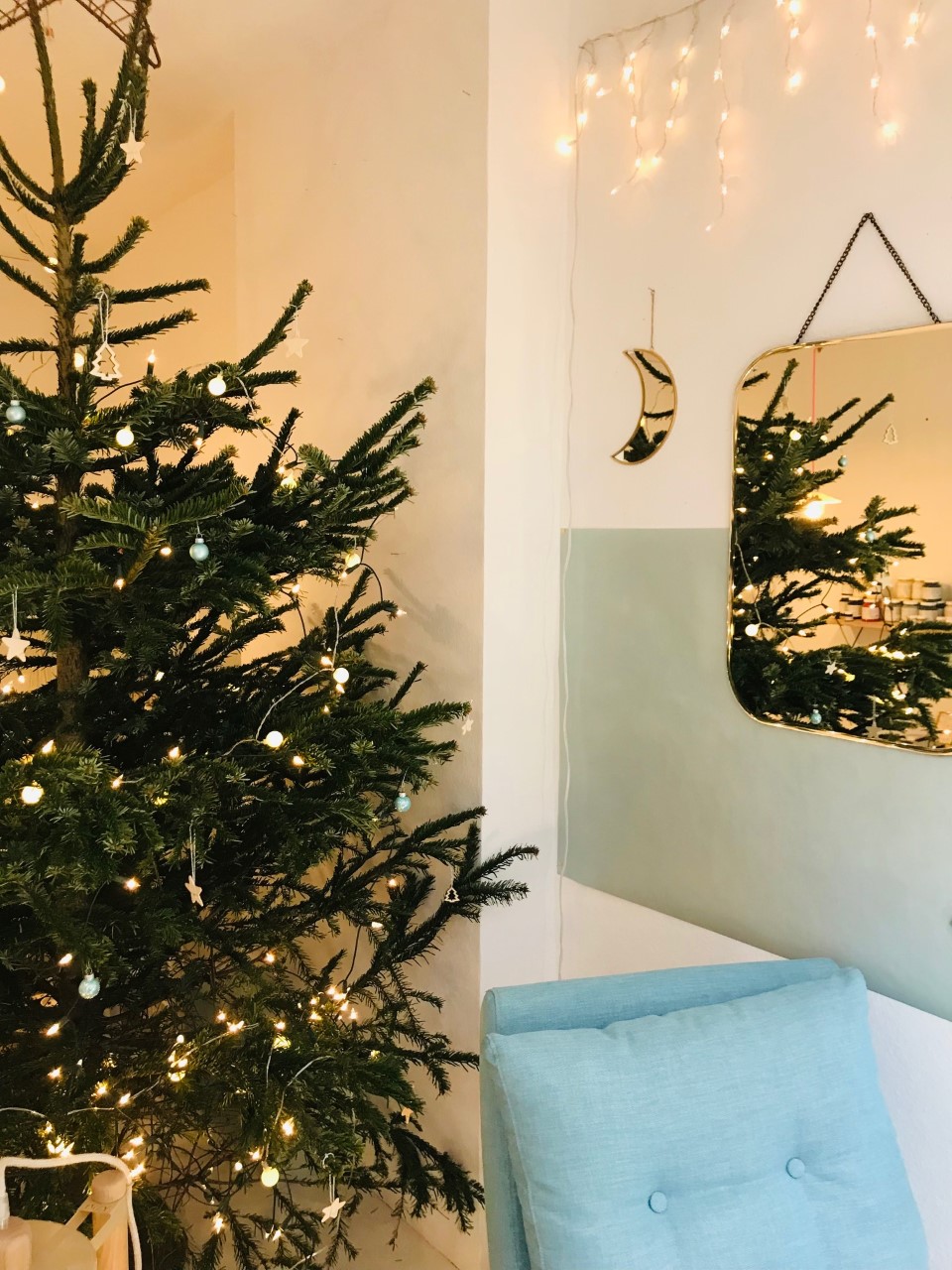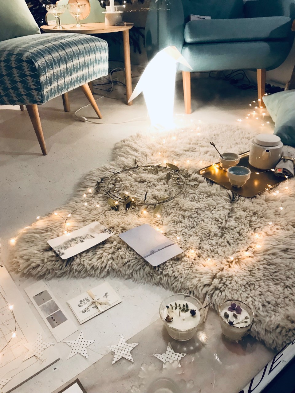 Paysages givrés, dehors, ambiance enneigée à l’intérieur, et l’éclat d’une étoile de neige posée délicatement, d’un miroir où la lumière dorée se reflète