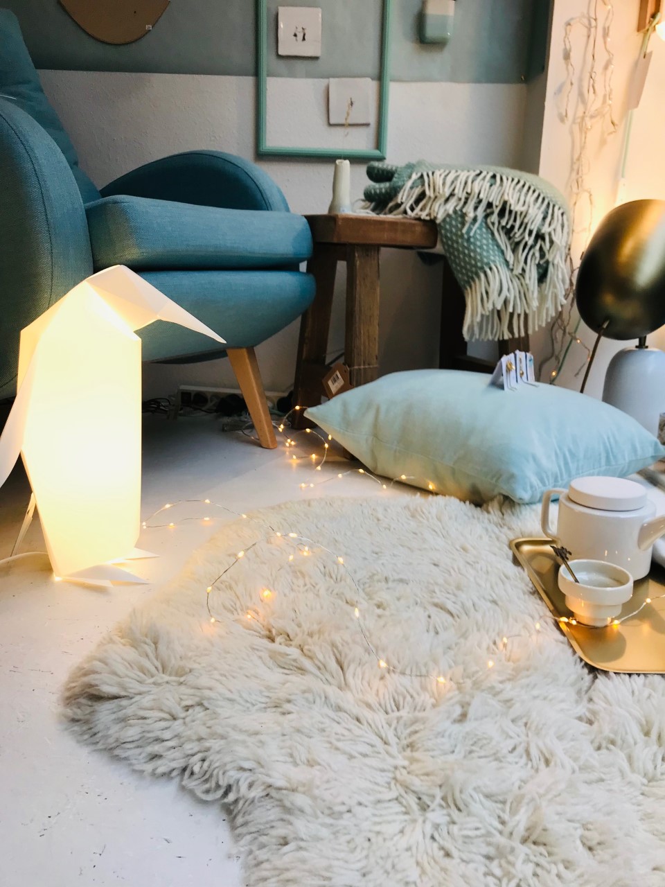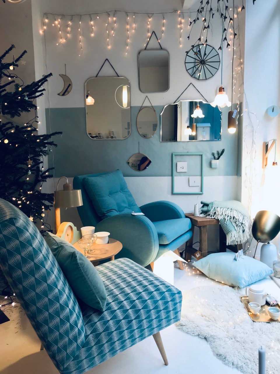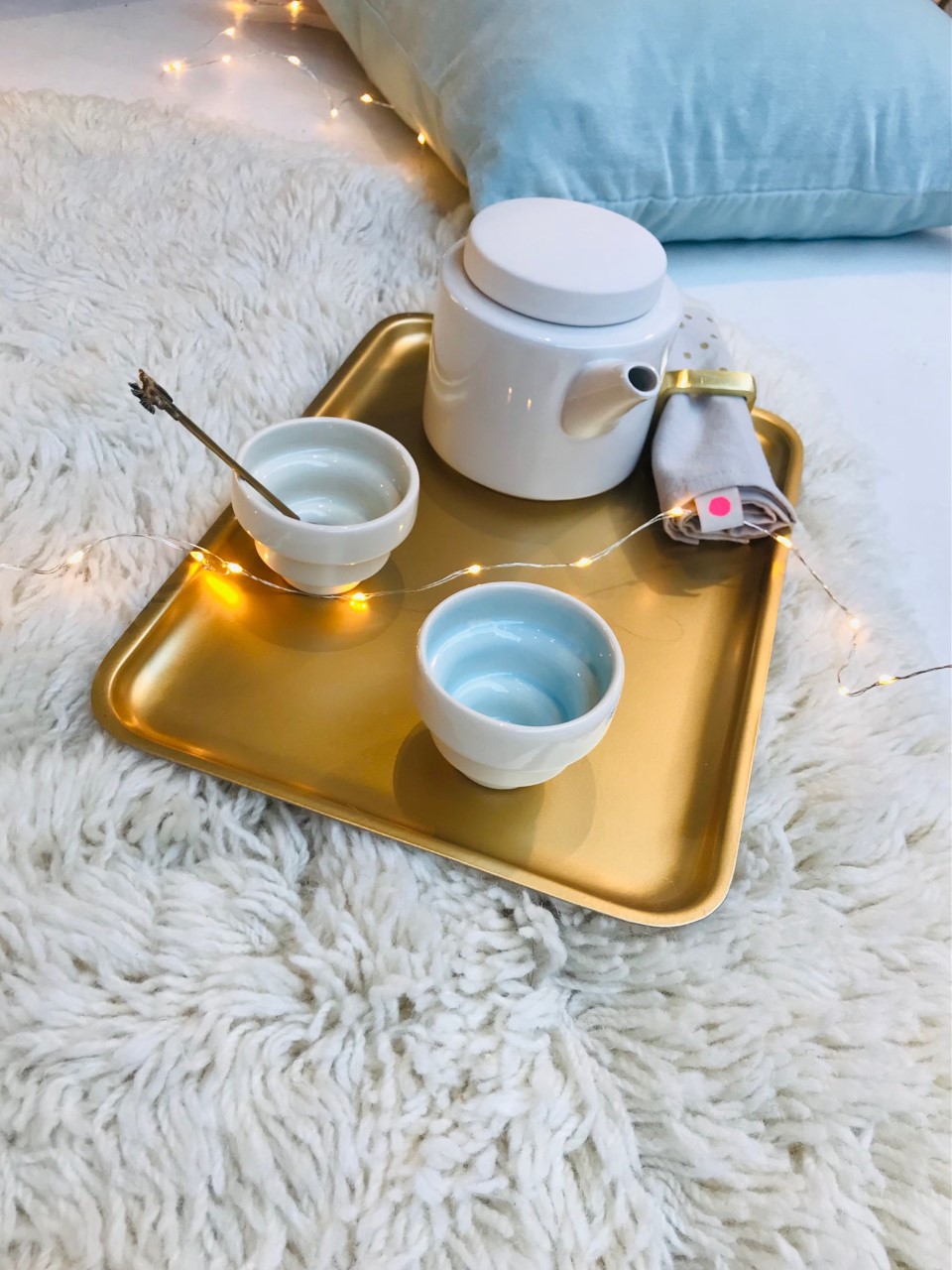 1. Housse de coussin velours bleu ciel 60×60 cm * Madam Stoltz € | 2. Tapis mouton en laine blanc “Sheep white” 75x&&0 cm * Lorena Canals – 119 € | 3. Chandelier doré “Double Ring” * Urban Nature Culture – 10,50€ | 4. Carreau décoratif en céramique “Hold me tight” * Story Tiles – 27,50 € | 5. Carreau décoratif en céramique “Life’s a pirouette” * Story Tiles – 27,50 € | 6. Couronne de fleurs en métal doré * Madam Stoltz – 24 € | 7. Miroir elliptique doré petit * Madam Stoltz – 21,50 € | 8. Miroir ovale paysage doré * Madam Stoltz – 30 € | 9. Calendrier 2022 “Solstices & Equinoxes” – 365 journées ensoleillées * Sunny – 34 € | 10. Photophore en verre avec feuilles dorées incrustées en métal * Madam Stoltz – 7 € | 11. Tirages photos Craft Print, collection limitée Capsule GOLD, plusieurs dimensions * h.O.&M.e. édition – àpd de 8 €.