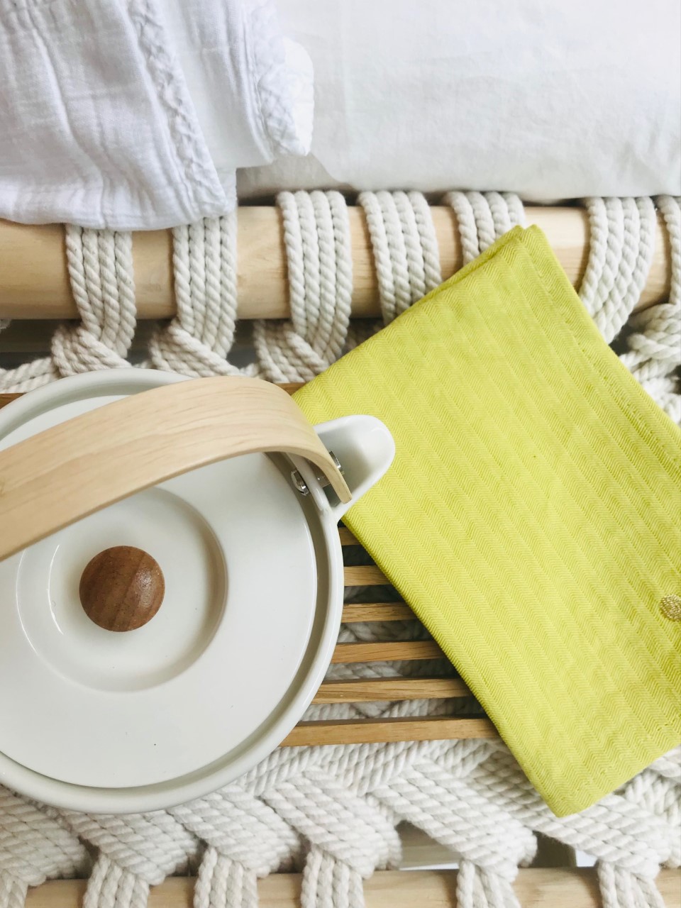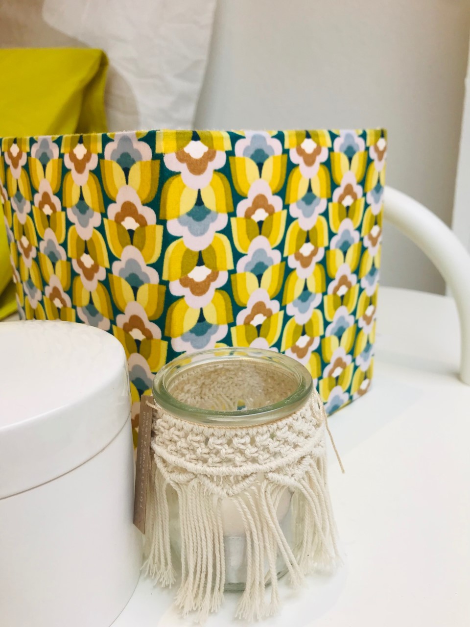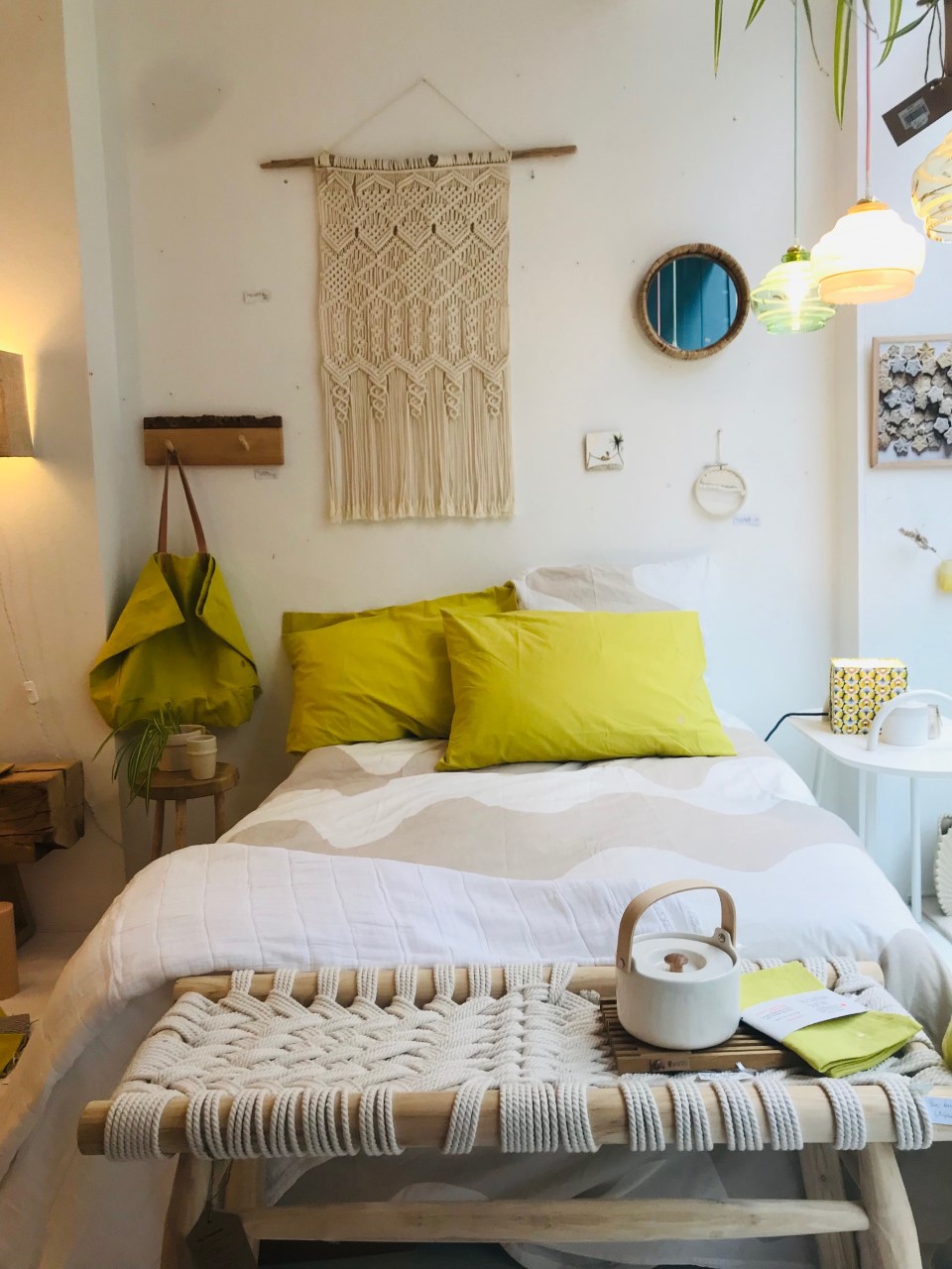 1. Taie d’oreiller 65×65 ou 50×70 cm Céleste Bergamote * La Cerise sur le Gâteau – 20 € | 2. Taie d’oreiller Lokki 65×65 ou 50×70 cm * Marimekko – 25 € | 3. Housse de couette Lokki 240×200 cm * Marimekko – 109 € | 4. Trio de patères branche en bois * Original Home – 13 € | 5. Carreau mural décoratif en céramique ” Greetings from…” * Story Tiles – 25 € | 6. Vase écru moucheté * Madam Stoltz – 22 € | 7. Vase feuille écru * Madam Stoltz – 34,50 € | 8. Masque de nuit Bergamote * La Cerise sur le Gâteau – 18€ | 9. Sac shopping Bergamote * La Cerise sur le Gâteau – 49€ | 10. Pochette Iona Bergamote * Le Cerise sur le Gâteau – 20€ | 11. Trousse cube (grand modèle) Bergamote * La Cerise sur le Gâteau – 32 € | 12. Banc en bois recyclé et corde coton macramé * Original Home – 220 €.