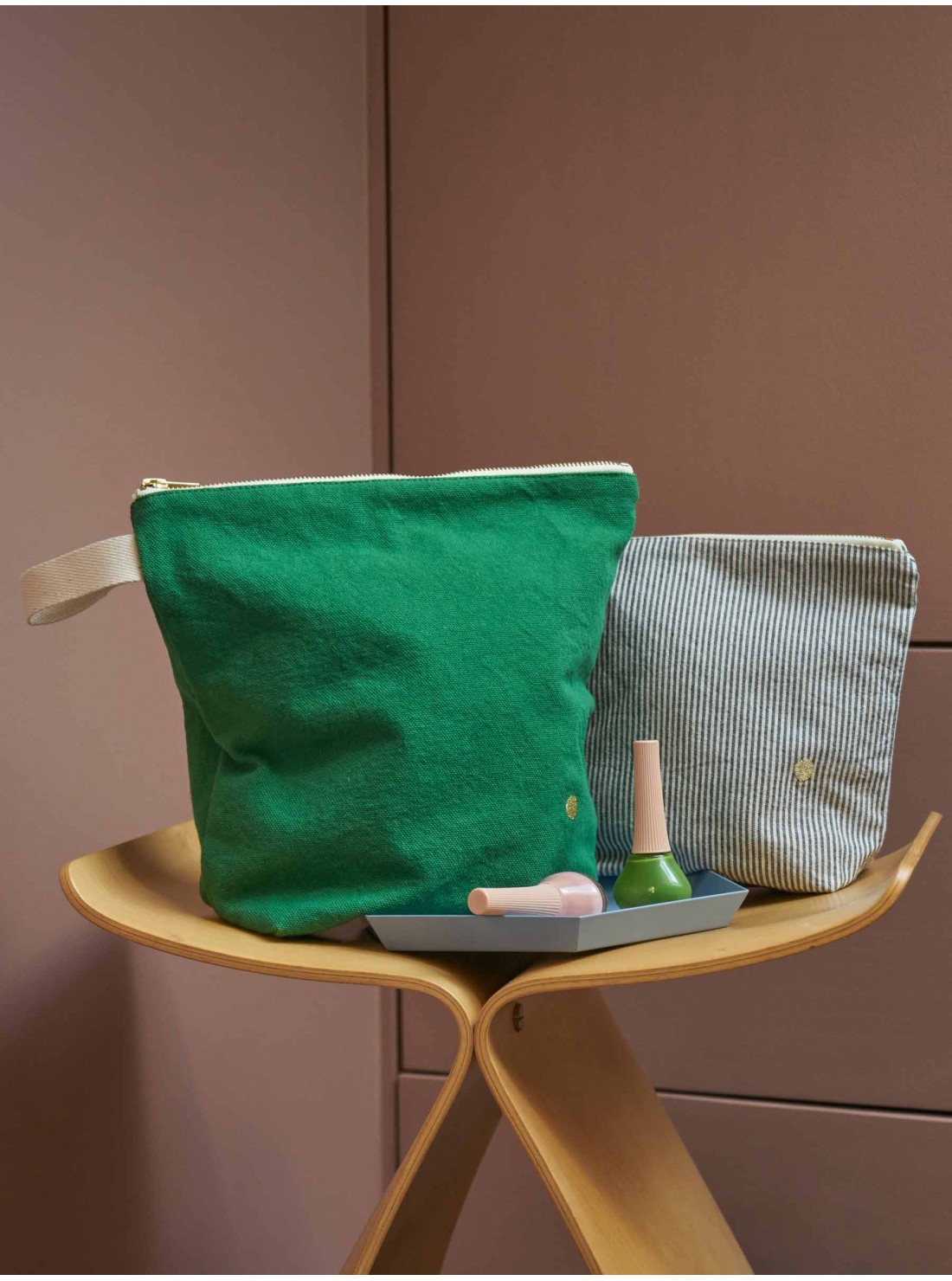 Ce grand modèle de notre classique trousse de toilette a été pensé pour que les produits de beauté, crèmes, shampoing et gel douche tiennent debout.