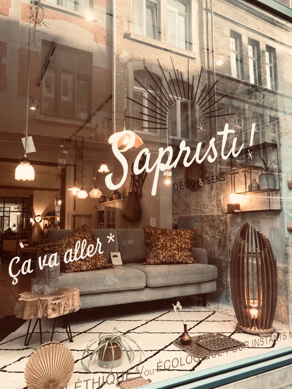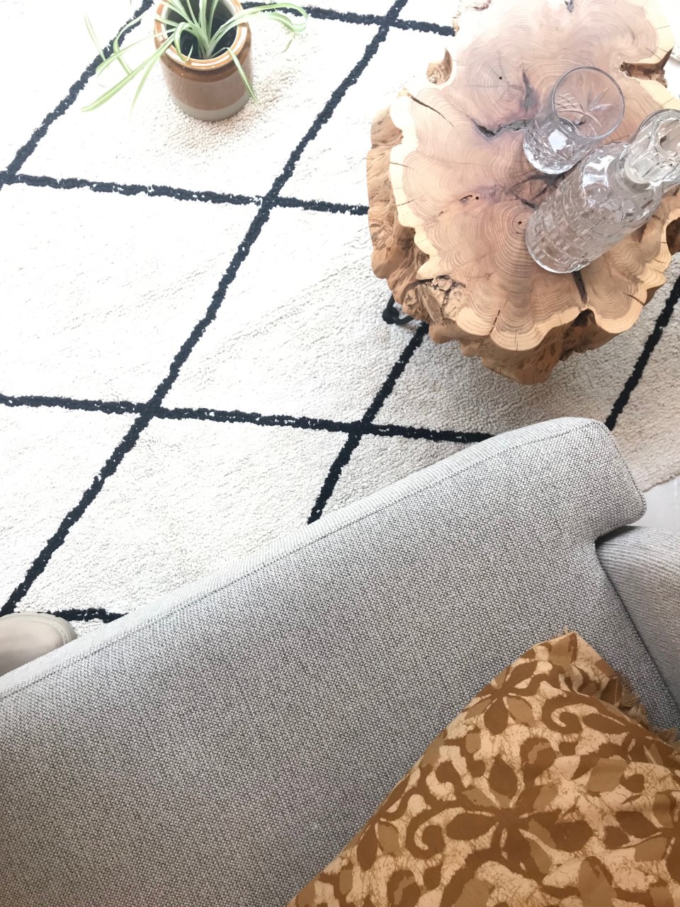 1. Canapé Sofa’sil “Waren” * Home Spirit – 2 places à partir de 936€ | 2. Etagère murale carrée en métal doré * Madam Stoltz – 104€ | 3. Cache-pot en céramique émaillé couleur camel * Madam Stoltz – 18,50€ | 4. Housse de coussin en lin lavé 60×60 cm motifs camel * Madam Stoltz – 22€ | 5. Vase feuille en céramique moutarde * Madam Stoltz – 34,50 € | 6. Vase mural court en céramique émail camel * Studio Harm & Elke – 20 € | 7. Vase mural tube émail camel * Studio Harm & Elke – 20 € | 8. Vase mural semi-circulaire en céramique émail camel * Studio Harm en Elke – 25€ | 9. Vase en céramique caramel * Madam Stoltz – 13 € | 10. Tapis Berbère écru/noir 140x200cm en coton lavable en machine * Lorena Canals – 240€ | 11. Verre ciselé * Madam Stoltz – 7,50€/pièce.