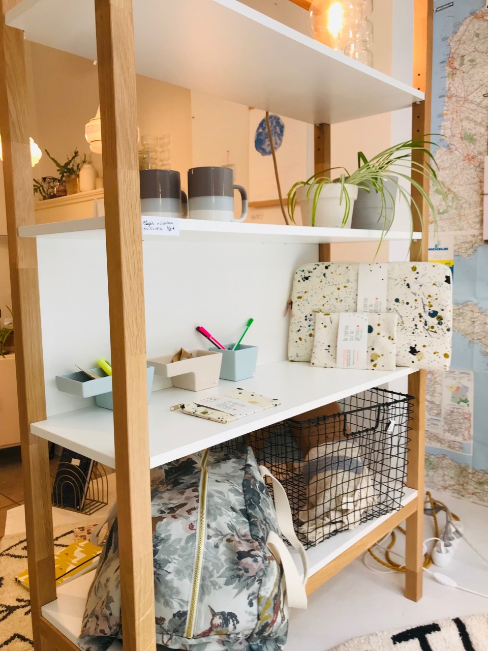 1. Etagère bibliothèque 90x32x185 cm * Woodman – 460 € | 2. Lampe de bureau * Dizy Design – 149 € | 3. Bureau “Victor” * Hârto Design – 810 € | 4. Tapis lavable en machine coton “ABC” diam. 150 cm * Lorena Canals – 145 € | 5. Pochette pour Ipad * La Cerise sur le Gâteau – 38 € | 6. Plumier “Joséphine” * La Cerise sur le Gâteau – 18 € | 7. Pochette pour ordinateur 15′ Brigitte * La Cerise sur le Gâteau – 50 € | 8. Range magazines en métal doré et bambou * Madam Stoltz – 40,25 € | 9. Set de 2 patères hirondelles en métal * Tresxics – 29 €
